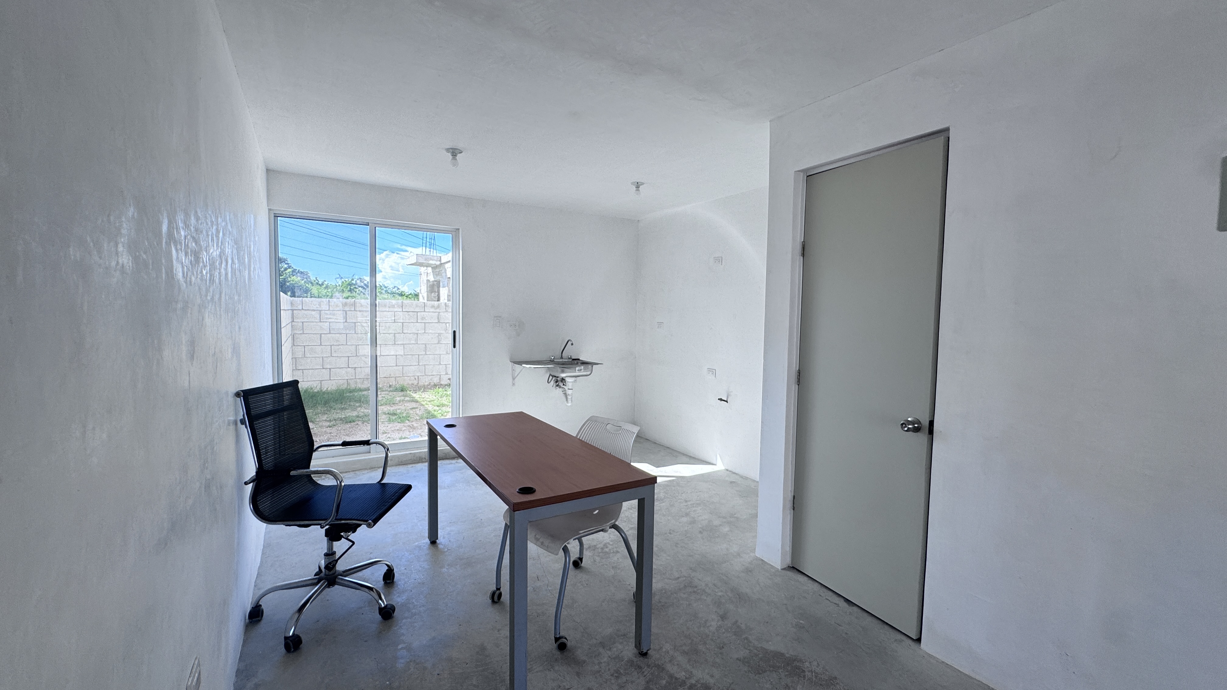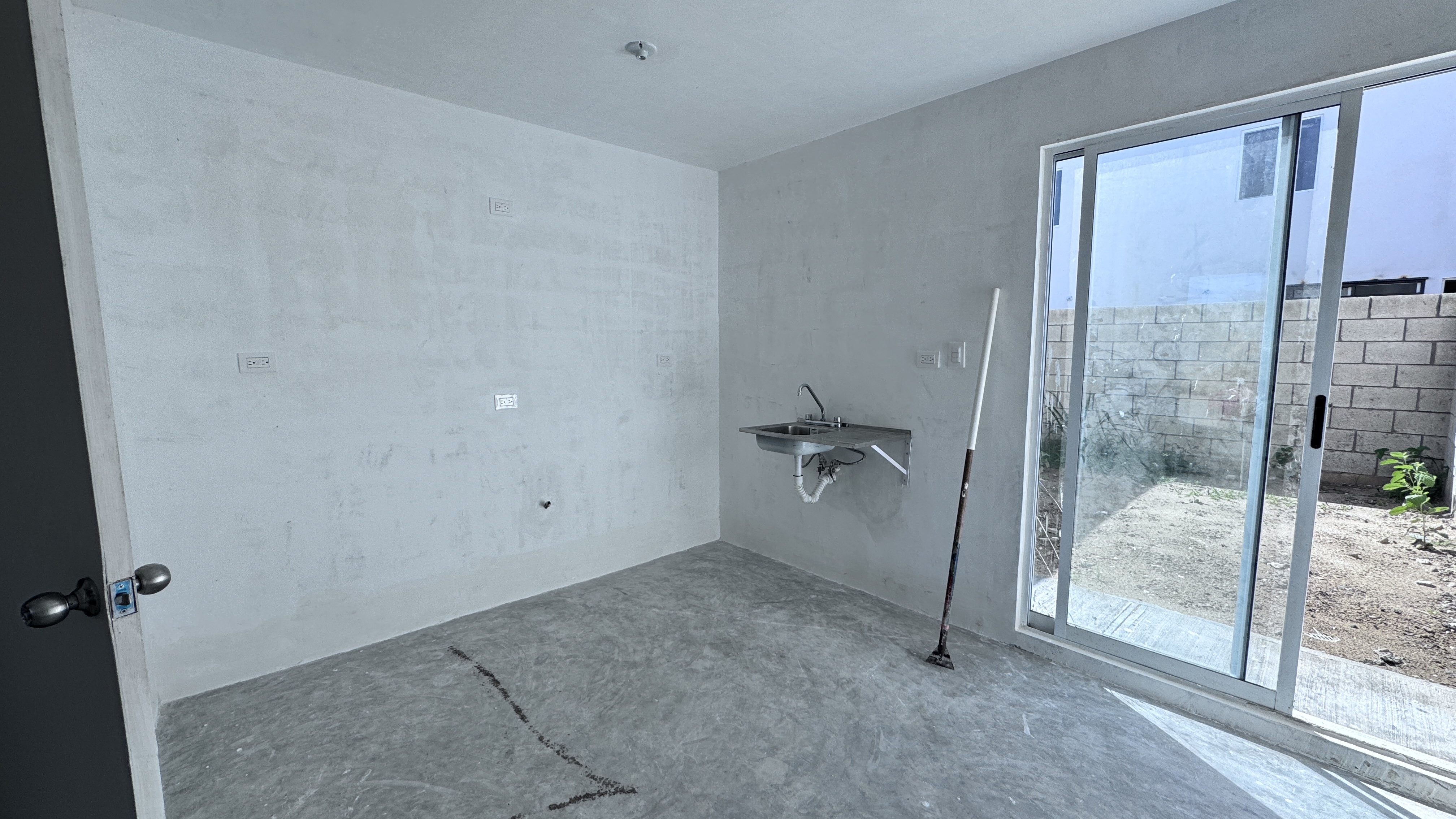 CON SERVICIO DE AGUA , LUZ , PISO CONCRETO PULIDO.